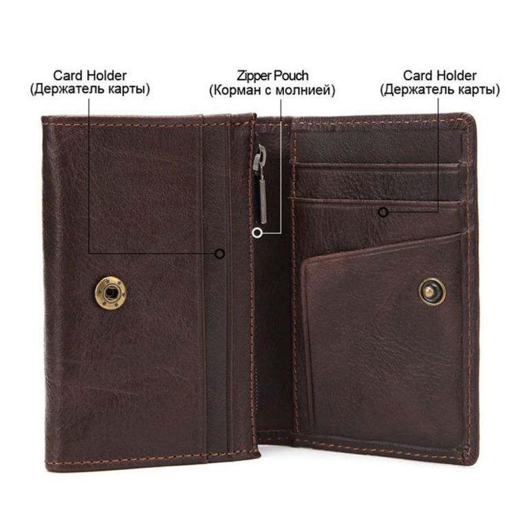 Вместимость (6 отделов для карт, 1 на молнии для денег и мелочи, 1 отсек для фото)