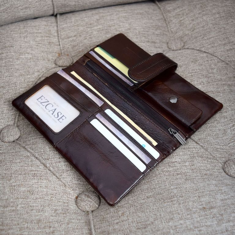 Вместимость (2 отдела для денег (1 на молнии), 6 для карт, 1 для мелочи на кнопке, 1 отсек для фото)